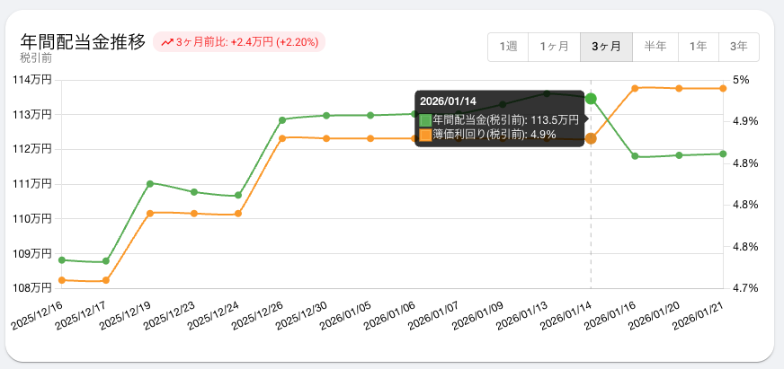推移グラフは、配当投資の成果を「なんとなく」ではなく、数字の流れとして振り返れるようにするための機能です。
