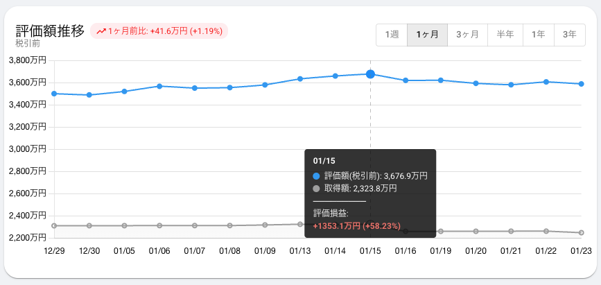 • 評価額と取得額を一緒に見られる → 値動きと買い増しの影響を整理できる